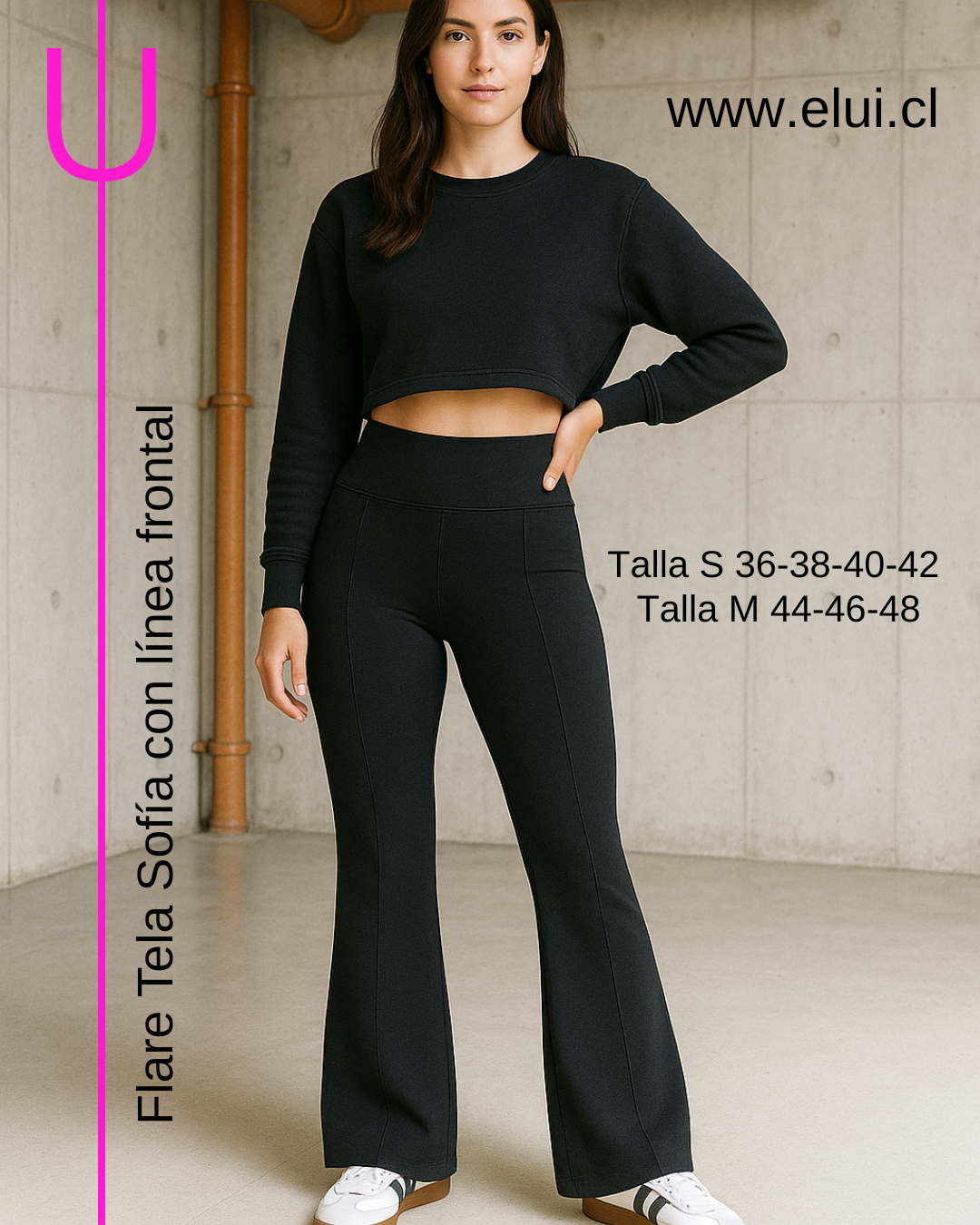 Calza Flare o Pata Elefante de tiro alto. Tela Sofía elasticada.